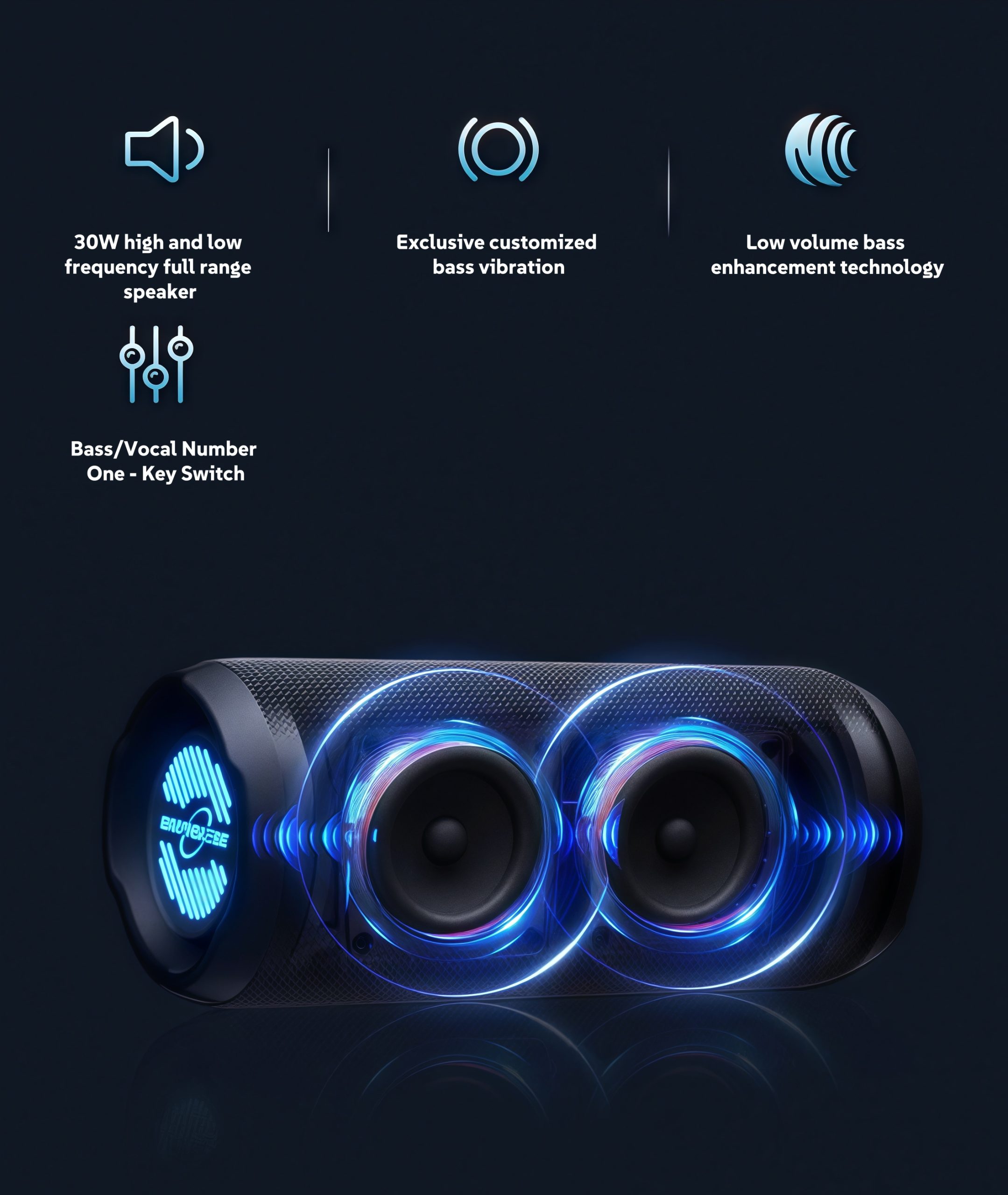 Wanyinba M6 Bluetooth Speaker is an outdoor audio device that combines high sound quality, portability, and stylish design. It is an ideal choice for outdoor activities, cycling, and car entertainment due to its powerful 30W power, subwoofer effect, and waterproof function. Whether you are a music enthusiast or an outdoor explorer, this speaker can meet diverse needs.