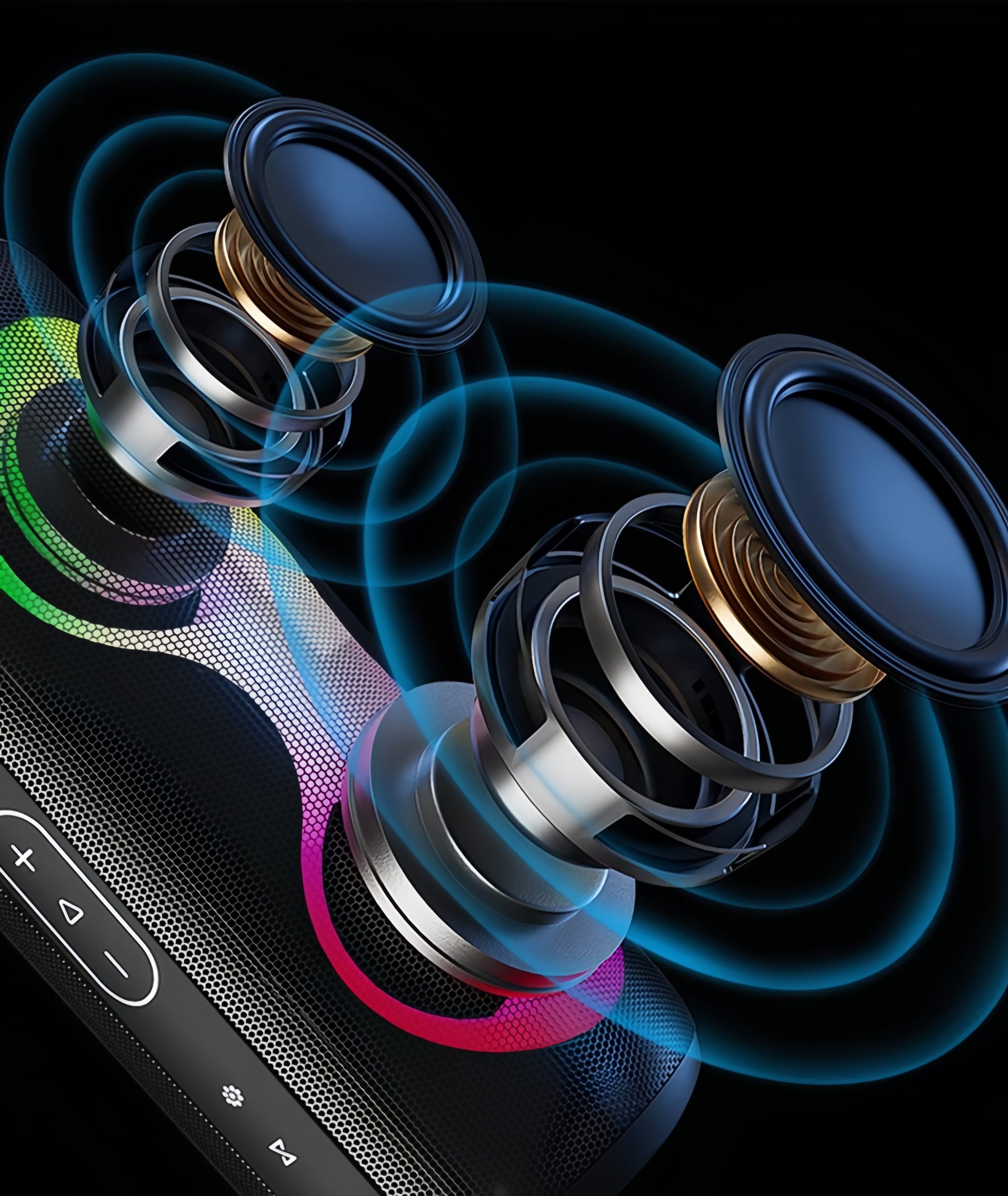 Wanyinba X8 Bluetooth speaker, with ultra-high power, stunning volume, strong bass, and excellent sound quality. Supports Bluetooth 5.3 and TWS surround sound, with ultra long battery life and IPX7 waterproof design, suitable for various outdoor, party and other scenarios. Portable and durable, with high cost-effectiveness, it is an ideal choice for music enthusiasts.